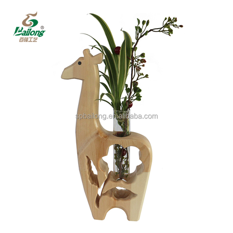 ของตกแต่งบ้านรูปสัตว์รูปหมีไก่กวางม้าหลอดแก้วแจกันดอกไม้งานฝีมือไม้